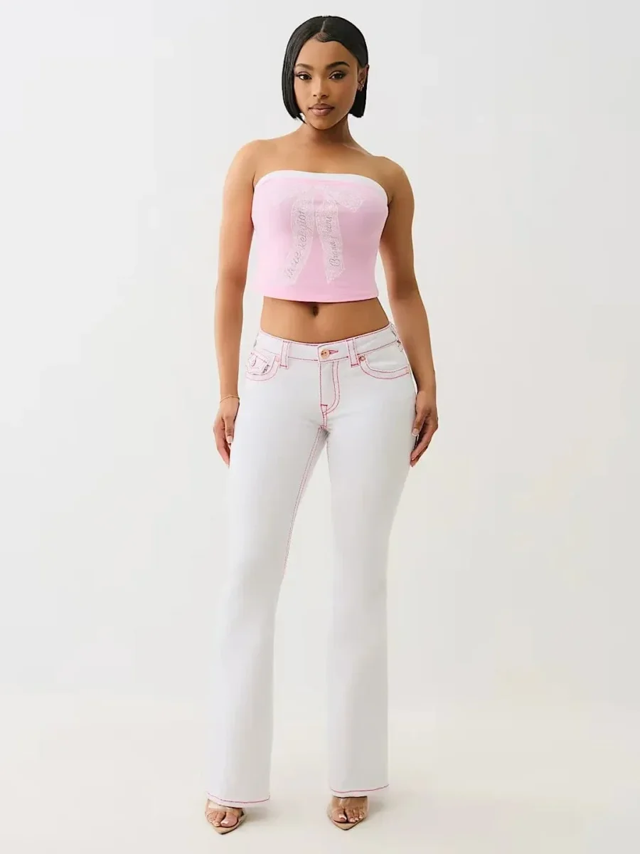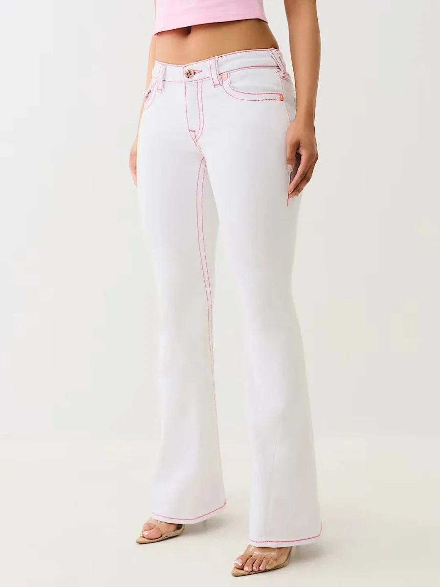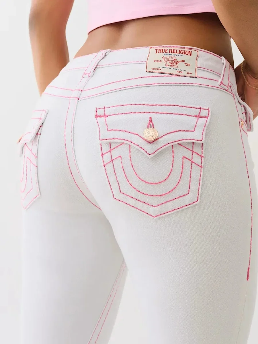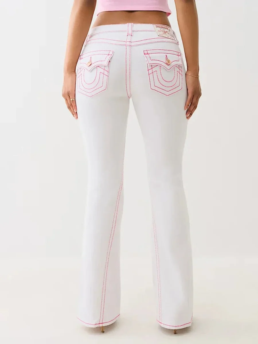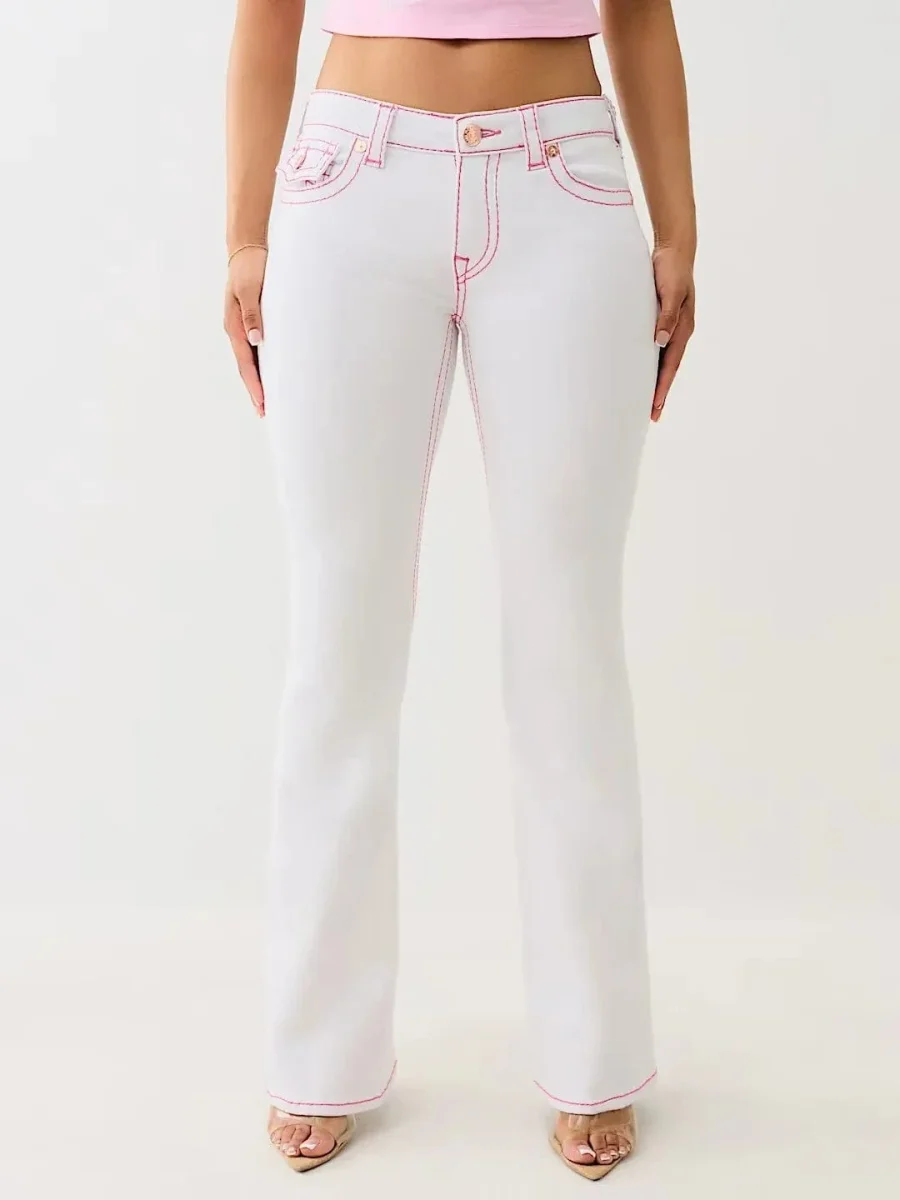 Vita bootcut jeans: när rosa kontraster ger nytt liv åt klassisk denim