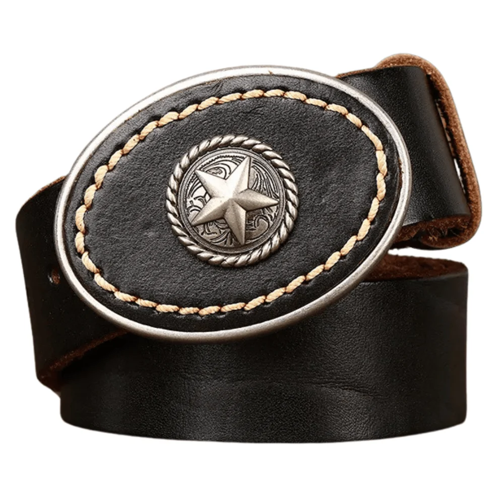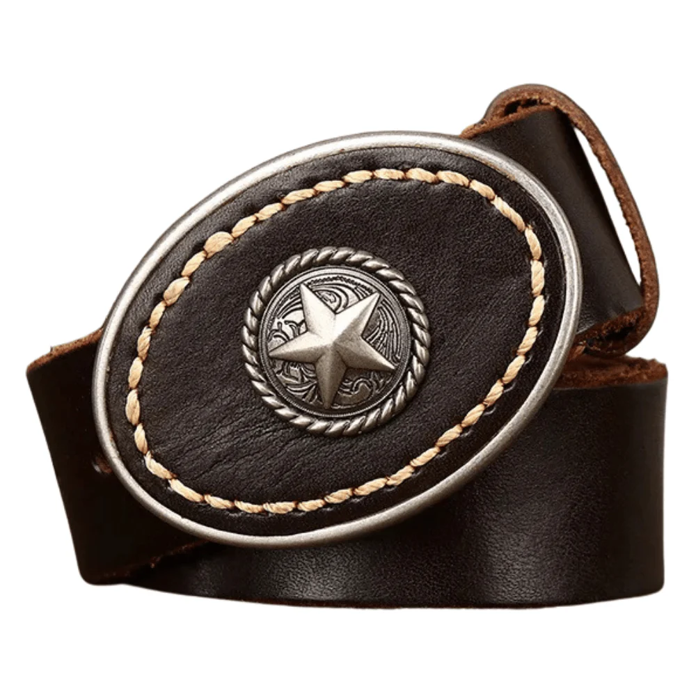 Det här är inte bara ett bälte – det är en karaktärsmarkör. Tillverkat i förstklassigt kohudsläder, med ett ovalt, präglat spänne som utstrålar autentisk västernkänsla och personlig stil.
