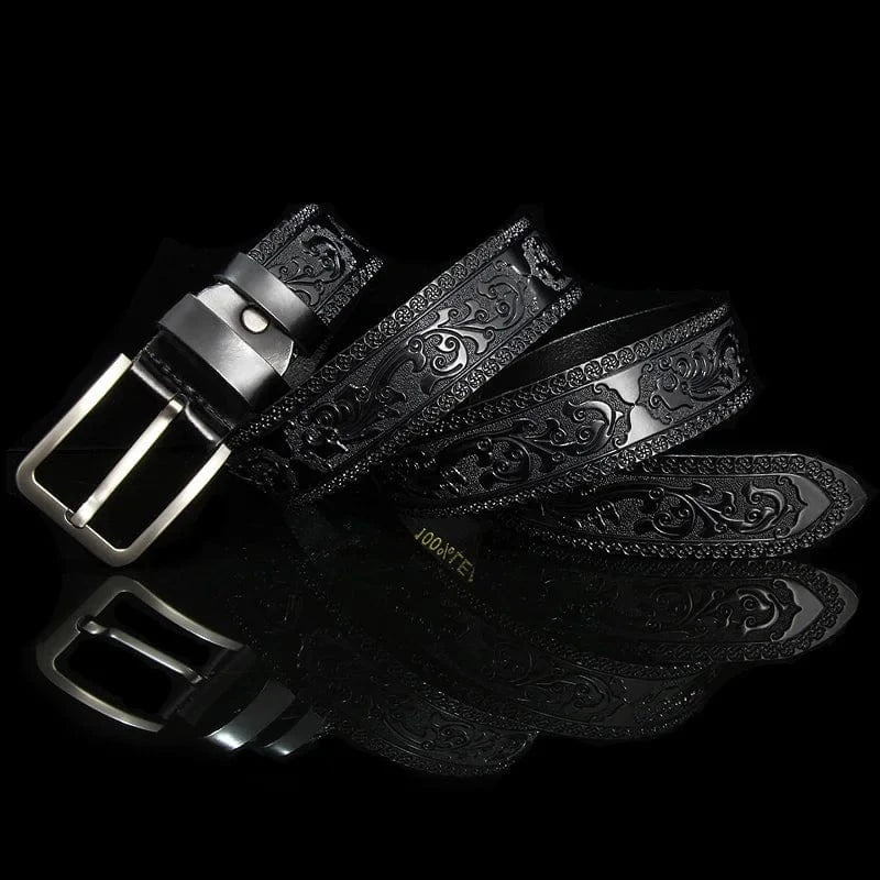Här möts form och funktion i ett bälte som bär både tradition och modernitet. Med ett djuppräglat blommönster, slitstarkt läder och ett klassiskt metallspänne blir detta westernbälte en självklar följeslagare till dina jeans, chinos eller mockajacka.