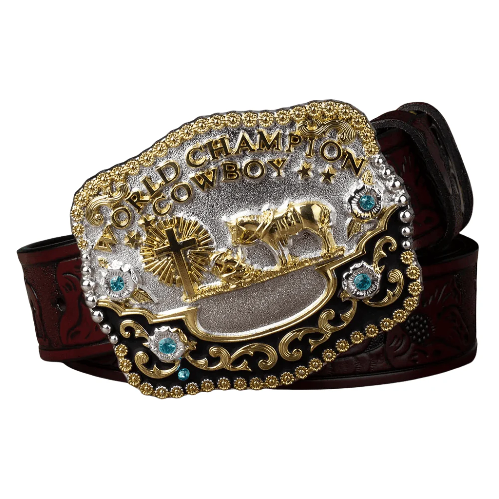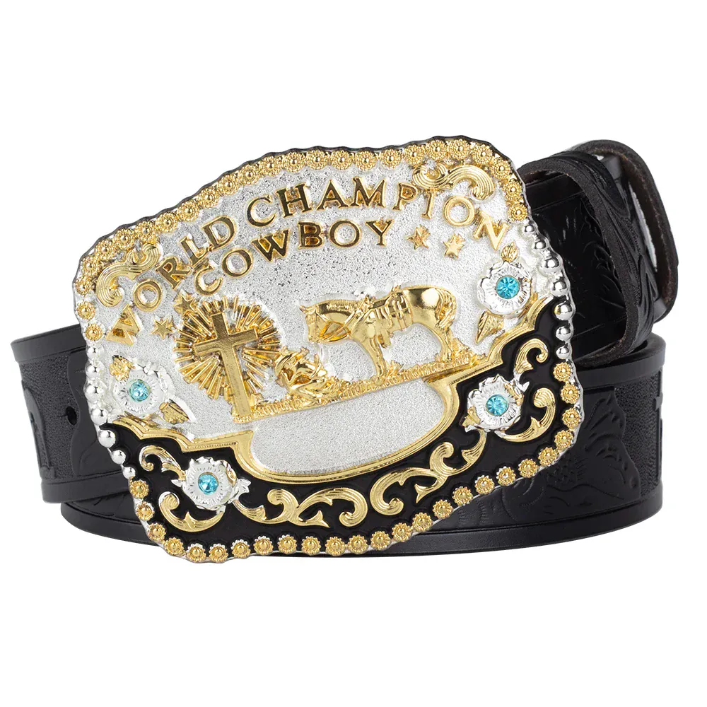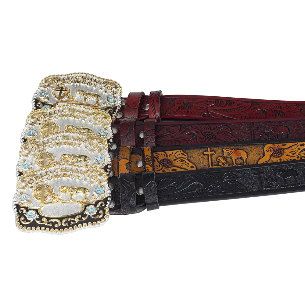 Westernbälte i läder med häst och kors spänne: för dig som älskar äkta cowboystil