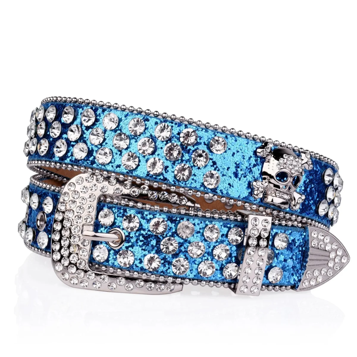 Oavsett om du är på väg till en konsert, festival eller bara vill lyfta din vardagsstil – det här bältet levererar. Ett westernbälte med sprakande strass, ikoniska dödskalle-detaljer och glittrigt PU-läder i färger som vågar ta plats. Välj mellan rött, rosa, blått, silver eller svart – och gör det till din signatur.