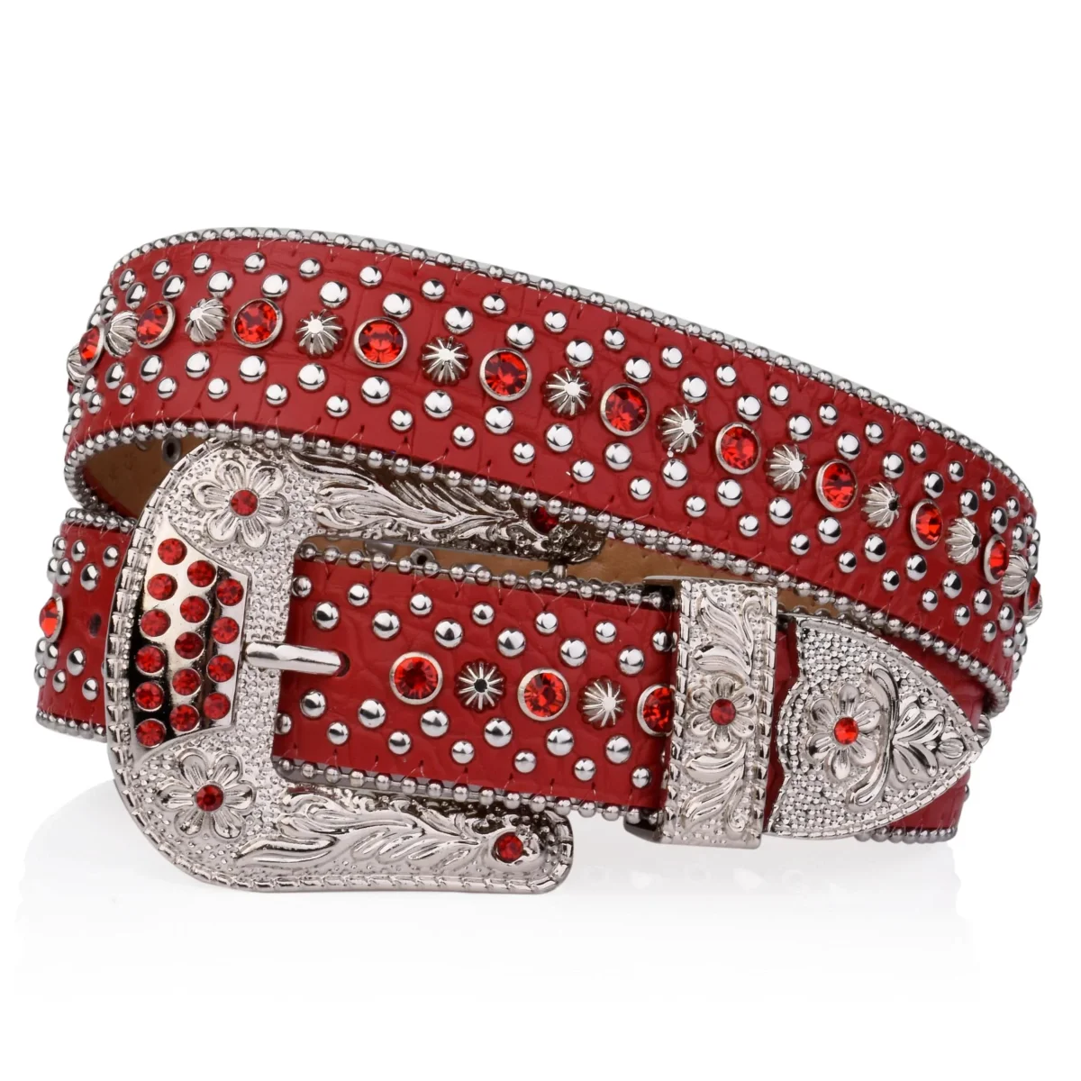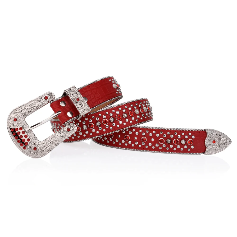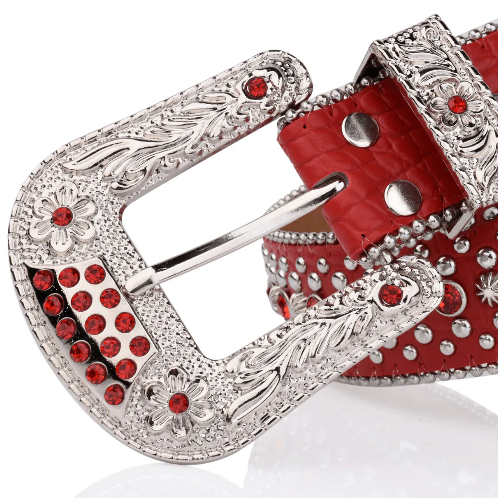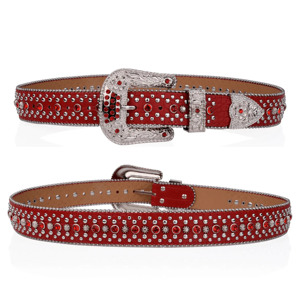 Älskar du att sticka ut och visa din personlighet? Det här bältet i klassisk westernstil är prytt med glittrande strasstenar och dekorativa nitar – en kaxig accessoar som lyfter allt från jeans till midiklänningar.