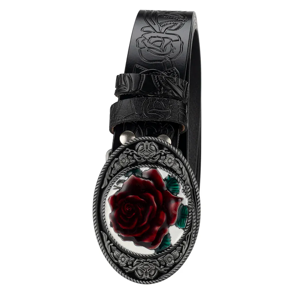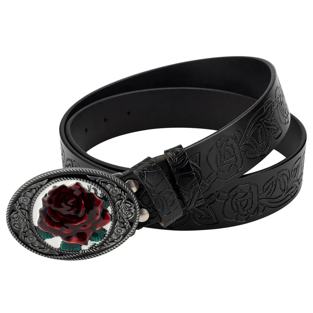 Westernläderbälte med rosenspänne: låt din stil blomma med kraft och elegans
