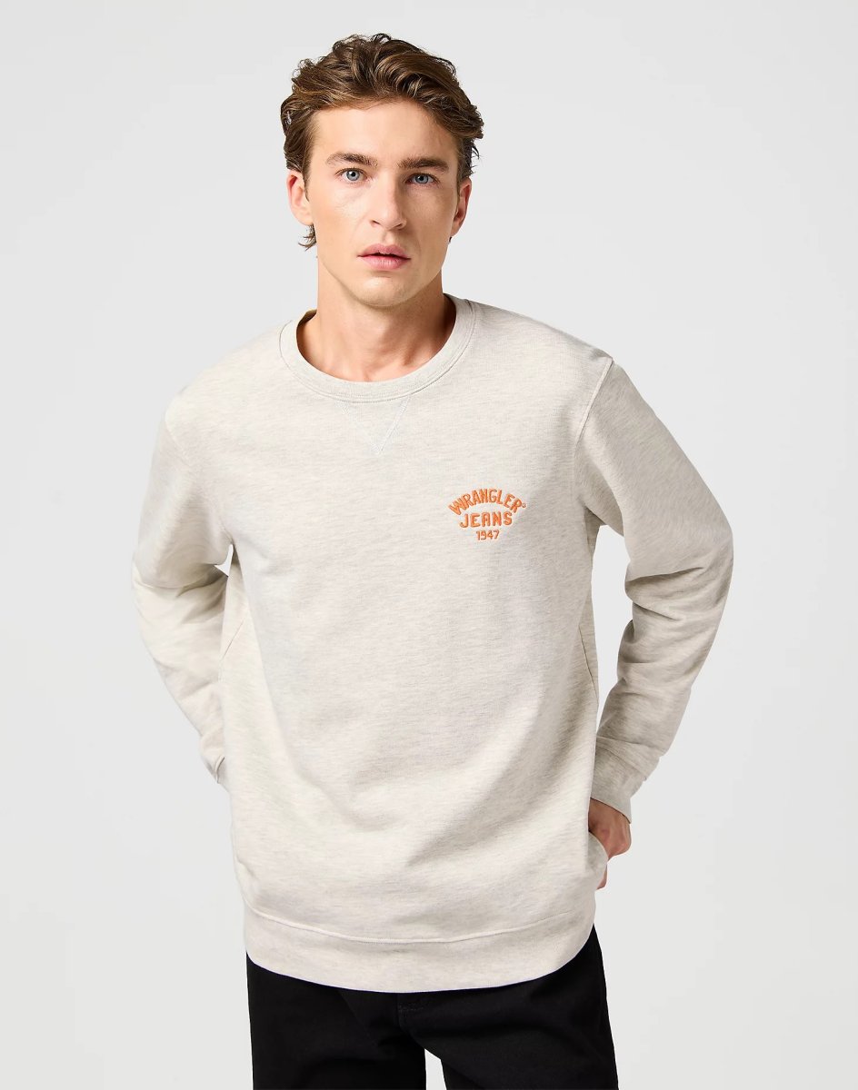 Vår Small Logo Sweatshirt ger pålitlig värme och hållbarhet till din garderob och har en normal passform, rak fåll och en broderad slogan ”Wrangler Jeans 1947” på bröstet på bröstet.