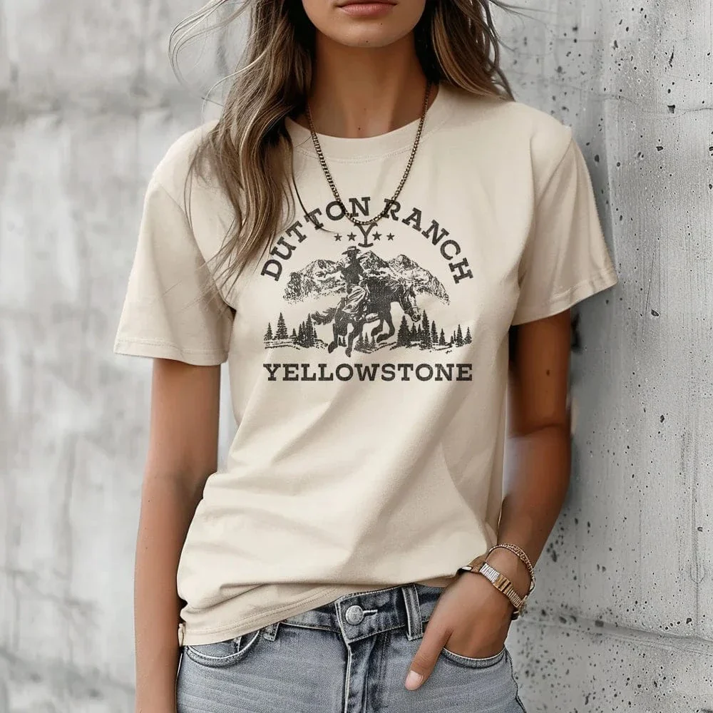 Fånga den tidlösa vilda västern-känslan med vår Yellowstone cowgirl T-shirt. Perfekt för dig som älskar casual mode med en touch av äventyr och frihet.