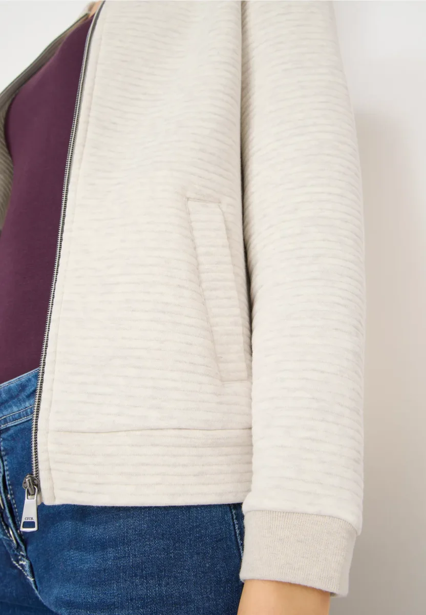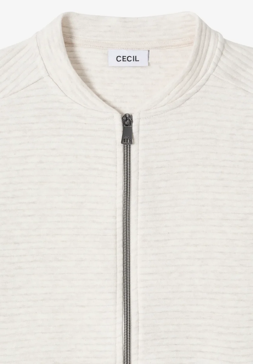Zipjacka i strukturmönster från Cecil. Rund hals och fickor fram samt ribbade muddar vid ärmsluten och nedtill.